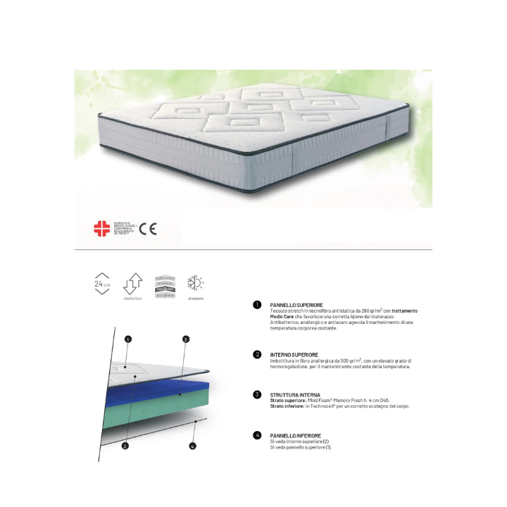 3 STRUTTURA INTERNA Strato superiore: Mind Foam® Memory Fresh h. 4 cm D40. Strato inferiore: in Technocell® per un corretto sostegno del corpo.